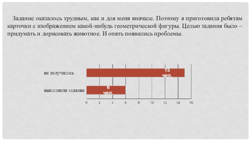 я приготовила ребятам карточки с изображением какой-нибудь геометрической фигуры. Целью задания было – придумать и дорисовать животное. И опять появились проблемы.