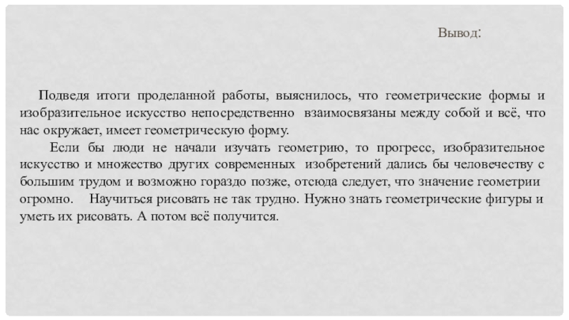 изобразительное искусство непосредственно взаимосвязаны между собой и всё, что нас окружает, имеет геометрическую форму.