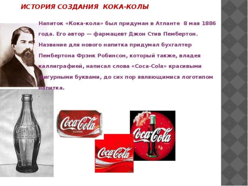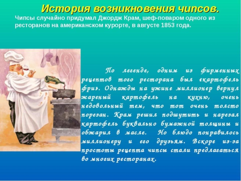 Изучить историю создания и распространения чипсов, кока-колы, кириешек.