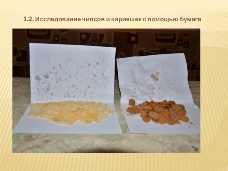 Слайд 171.2. Исследование чипсов и кириешек с помощью бумаги