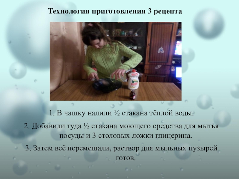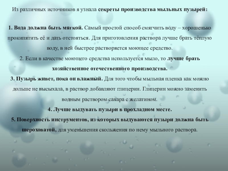 Слайд 12Из различных источников я узнала секреты производства мыльных пузырей: