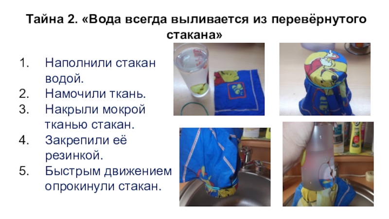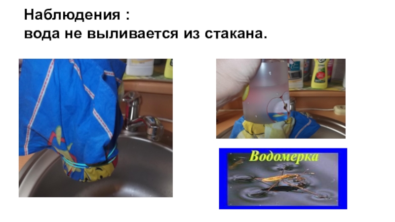 · Берем за свободный конец нитки и вытаскиваем кубик льда из стакана.
