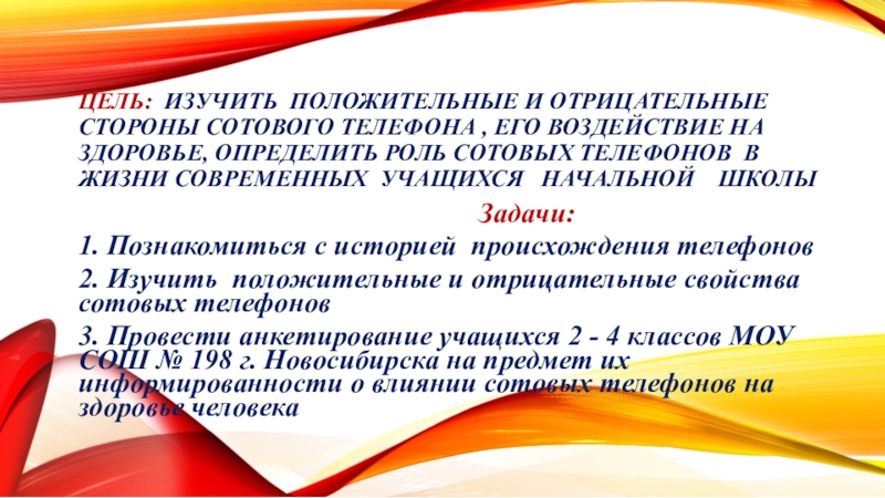 3. Провести анкетирование учащихся 2 - 4 классов МОУ СОШ № 198 г. Новосибирска на предмет их информированности о влиянии сотовых телефонов на здоровье человека