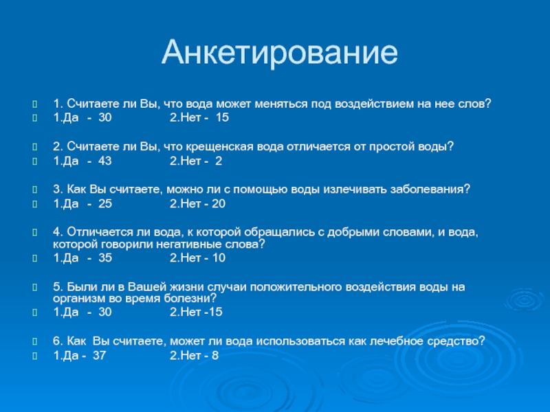 1. Считаете ли Вы, что вода может меняться под воздействием на