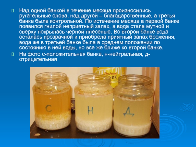 Слайд 8Над одной банкой в течение месяца произносились ругательные слова, над другой