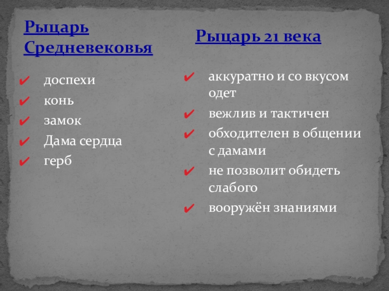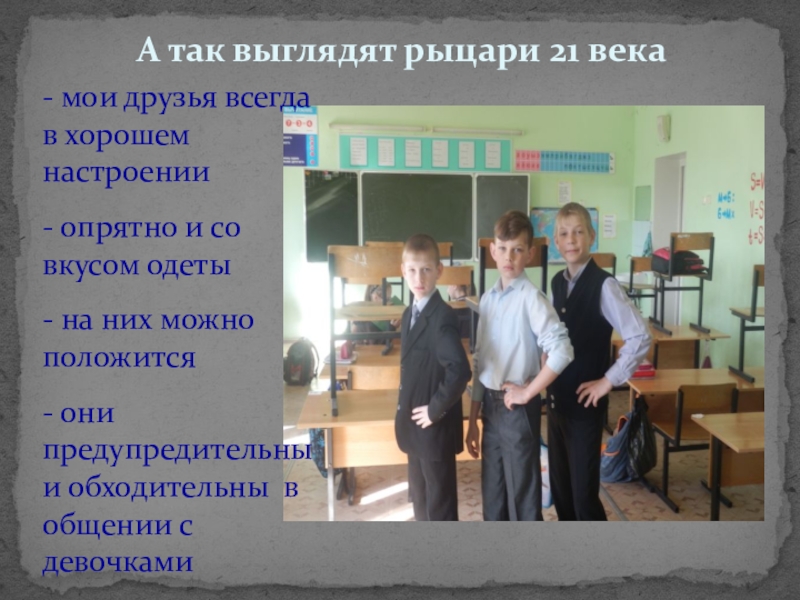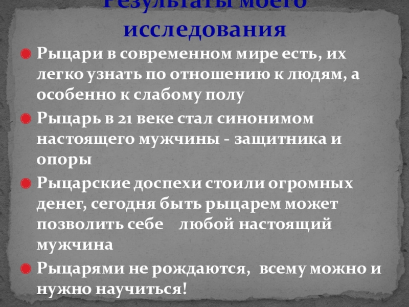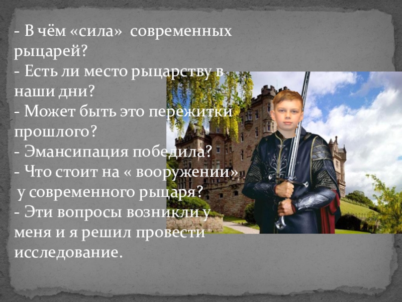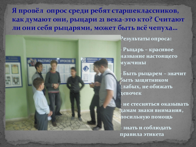 Я провёл опрос среди ребят старшеклассников, как думают они, рыцари 21 века-это кто? Считают ли они себя рыцарями, может быть всё чепуха…