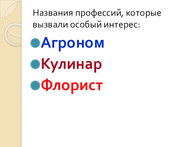 Слайд 7Названия профессий, которые вызвали особый интерес: