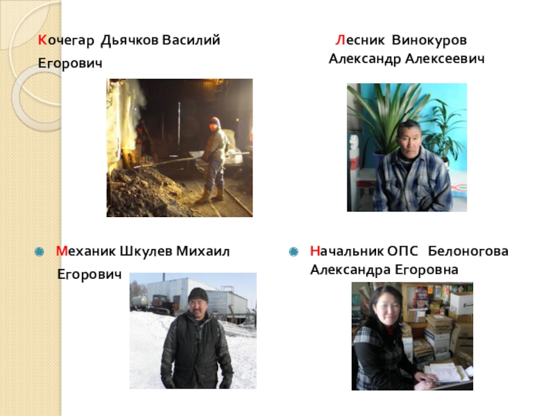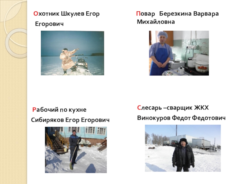 обучения ( дворник, повар, кочегар, охотник).