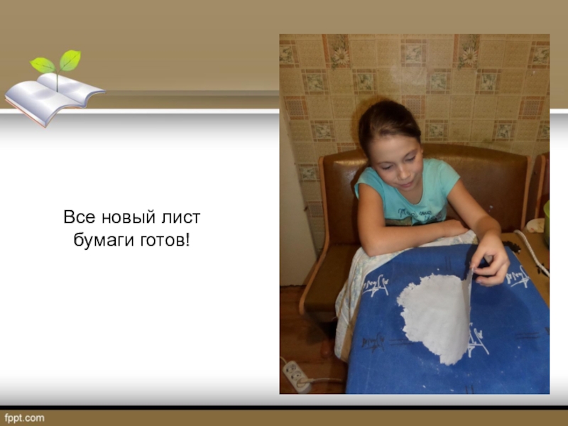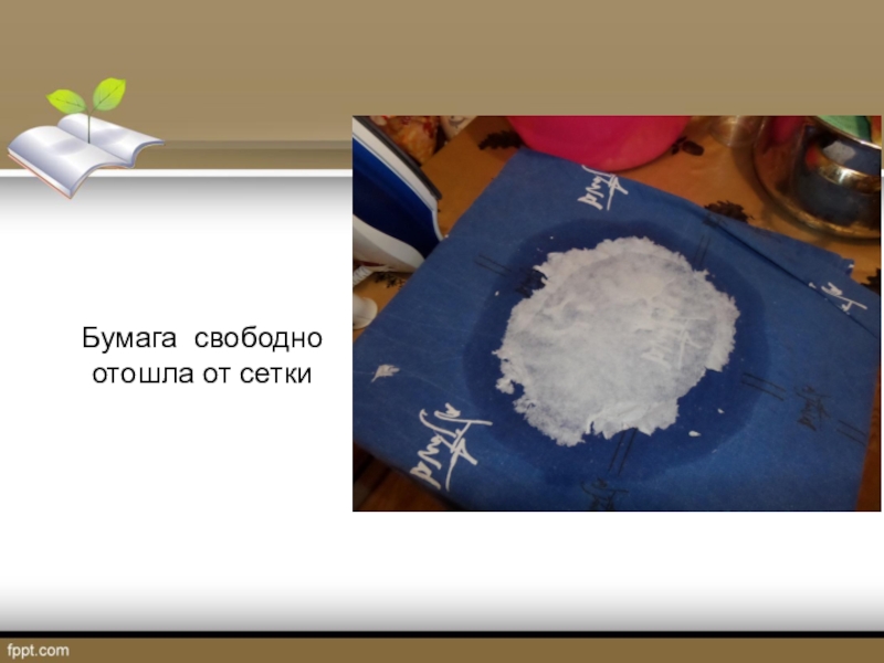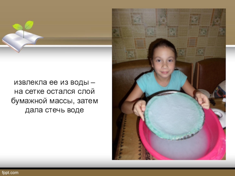 Слайд 17извлекла ее из воды – на сетке остался слой бумажной массы,