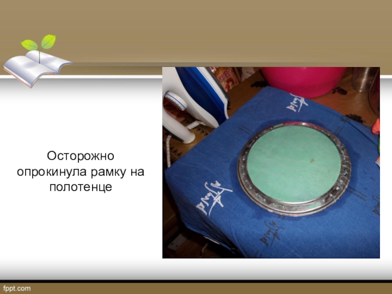 Слайд 18Осторожно опрокинула рамку на полотенце