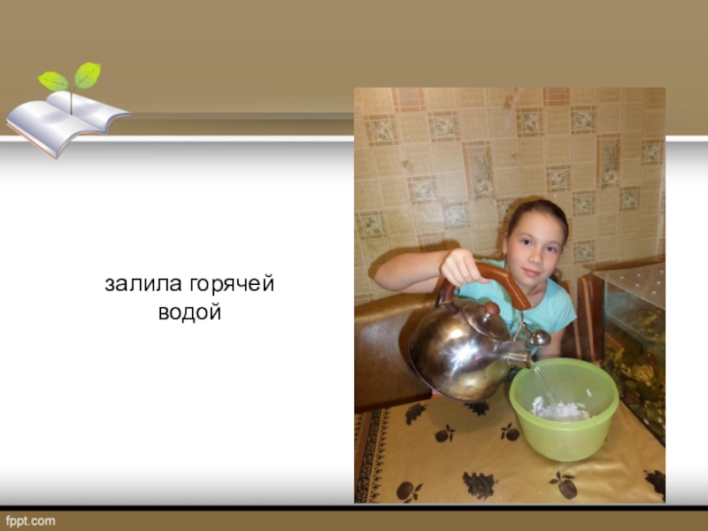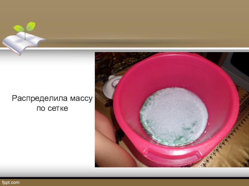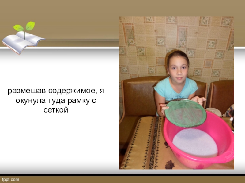 Слайд 15размешав содержимое, я окунула туда рамку с сеткой