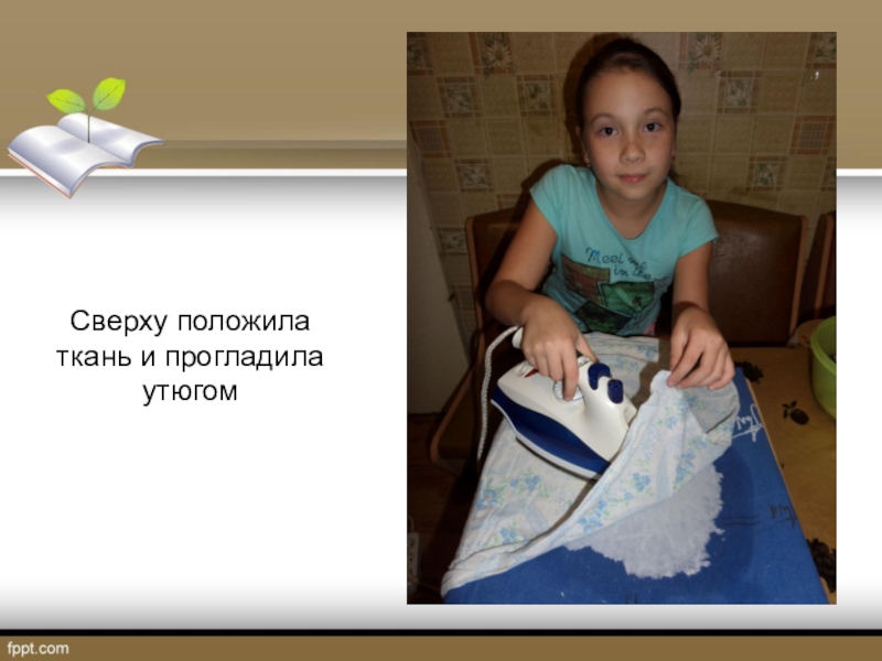 Слайд 20Сверху положила ткань и прогладила утюгом