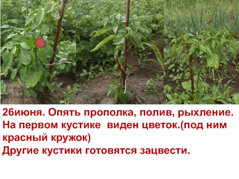 Слайд 1926июня. Опять прополка, полив, рыхление. На первом кустике виден цветок.(под ним