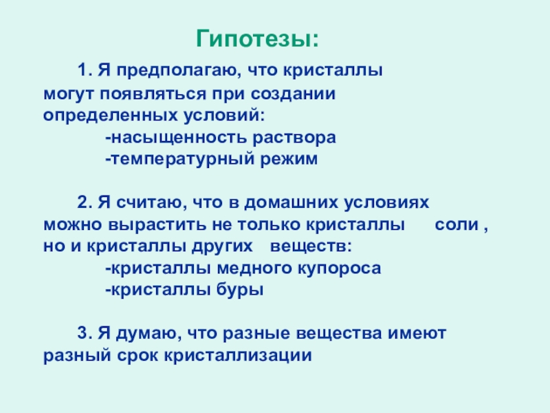и мы решили вырастить кристалл соли и других веществ в домашних условиях.