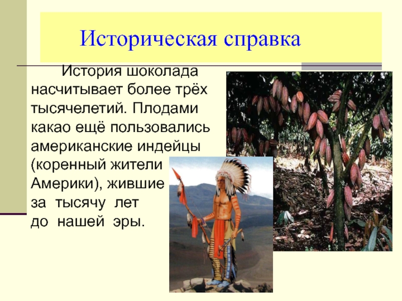 Изначально шоколад употреблялся только как напиток. С языка индейцев слово «шоколад» переводится как «горькая вода»