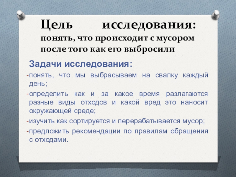 определить как и за какое время разлагаются разные виды отходов и какой вред это наносит окружающей среде;