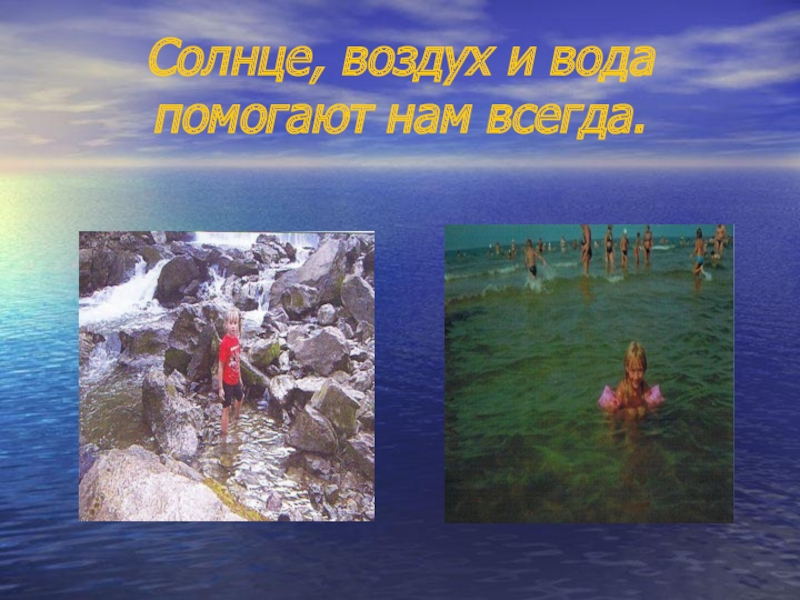 Слайд 19Солнце, воздух и вода помогают нам всегда.