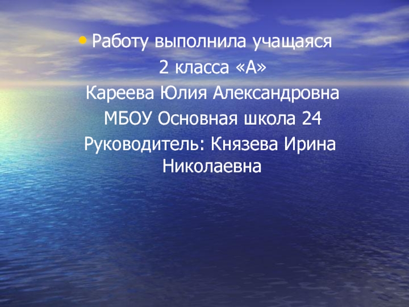 Работу выполнила учащаяся  2 класса «А»  Кареева Юлия Александровна  МБОУ Основная школа 24 Руководитель: