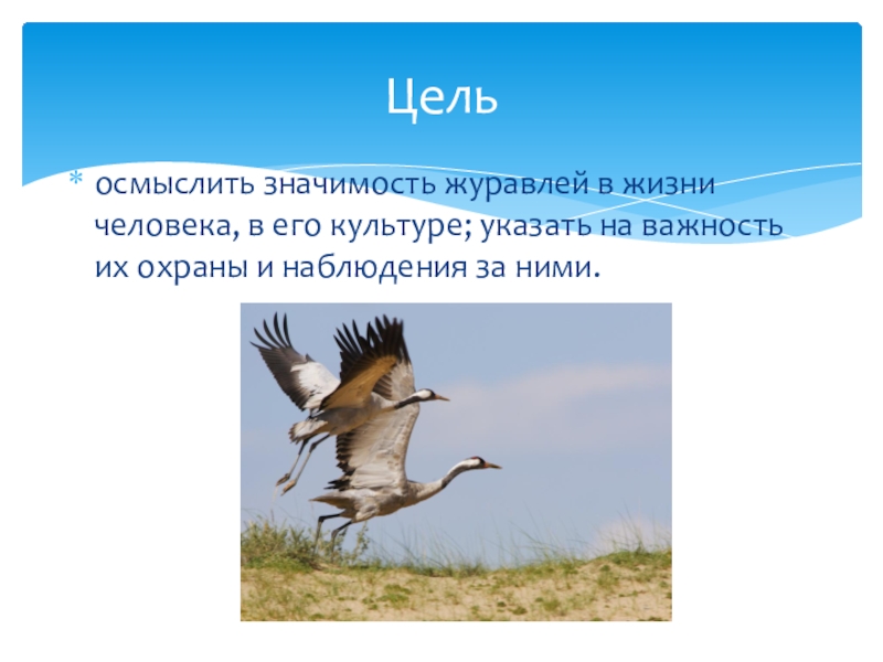 Слайд 5осмыслить значимость журавлей в жизни человека, в его культуре; указать на