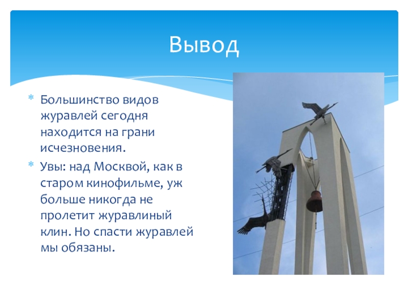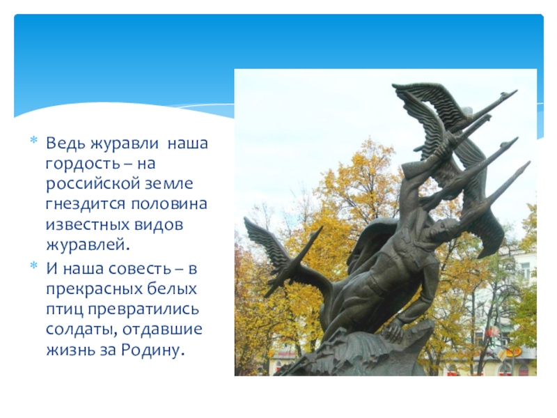 Слайд 30Ведь журавли наша гордость – на российской земле гнездится половина известных