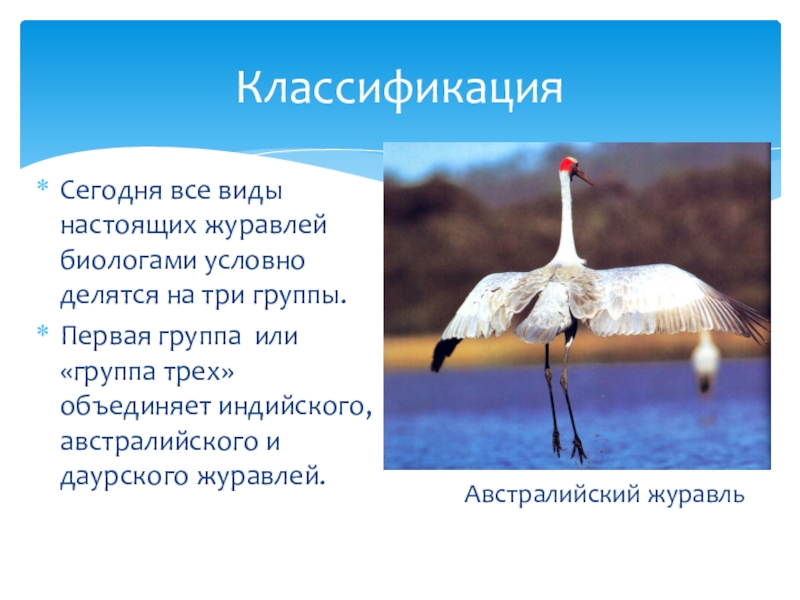 Сегодня все виды настоящих журавлей биологами условно делятся на три группы.