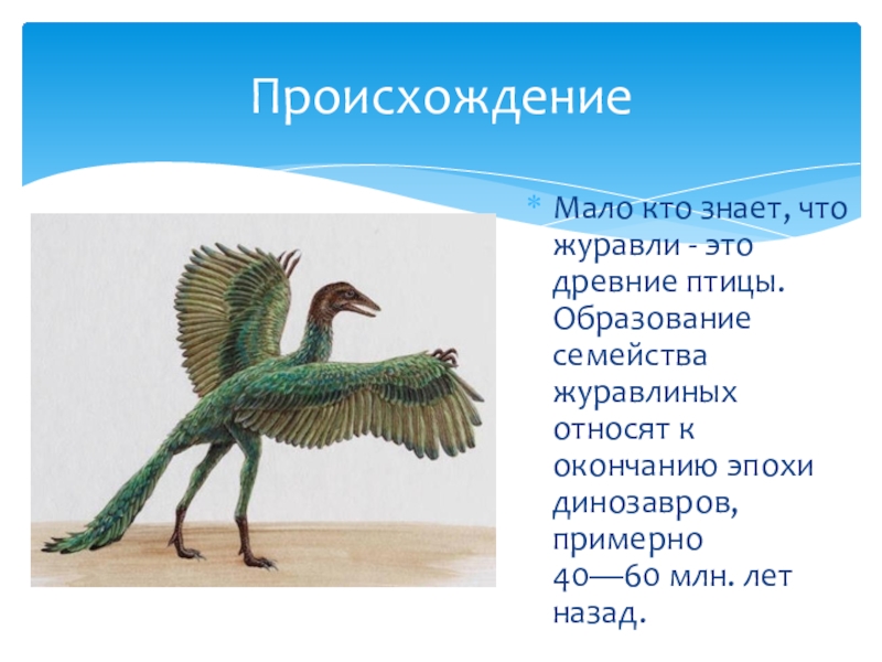 журавлиных относят к окончанию эпохи динозавров, примерно 40—60 млн. лет назад.