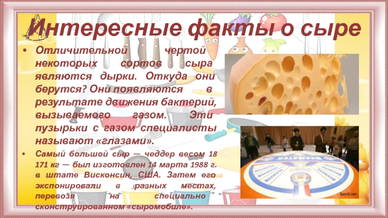 Слайд 20Интересные факты о сыре