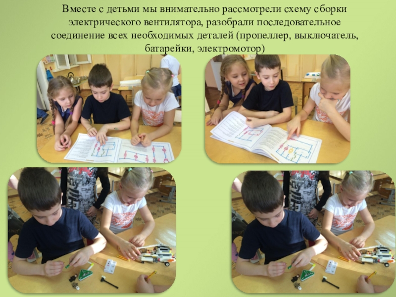Вместе с детьми мы внимательно рассмотрели схему сборки электрического вентилятора, разобрали