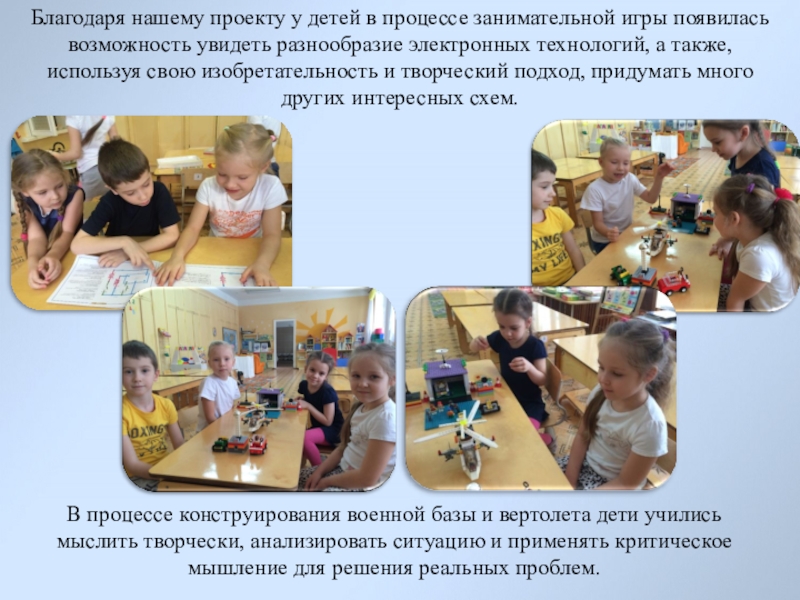 В процессе конструирования военной базы и вертолета дети учились мыслить творчески, анализировать ситуацию и применять критическое мышление для решения реальных проблем.