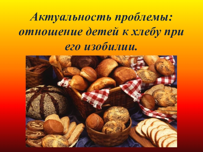 Слайд 2Актуальность проблемы: отношение детей к хлебу при его изобилии.