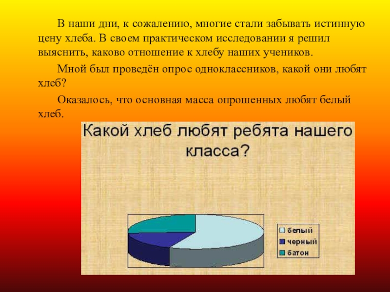 В своем практическом исследовании я решил выяснить, каково отношение к хлебу наших учеников.