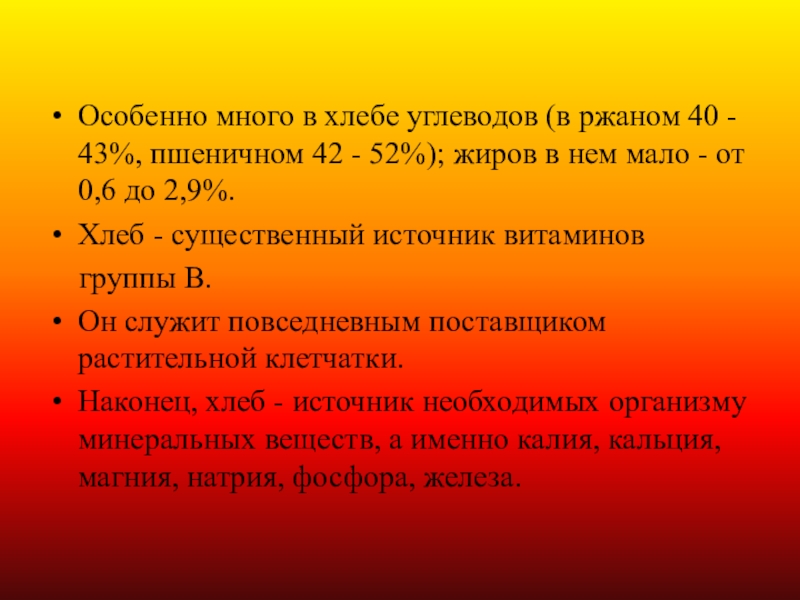 Слайд 19Особенно много в хлебе углеводов (в ржаном 40 - 43%, пшеничном