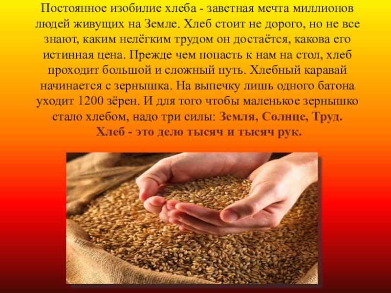 Слайд 5Постоянное изобилие хлеба - заветная мечта миллионов людей живущих на Земле.