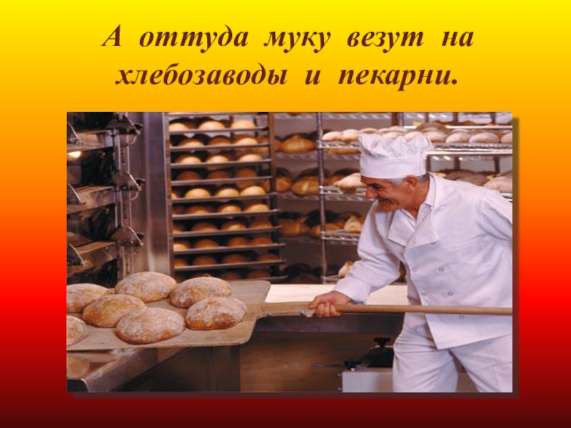 Слайд 11А оттуда муку везут на хлебозаводы и пекарни.