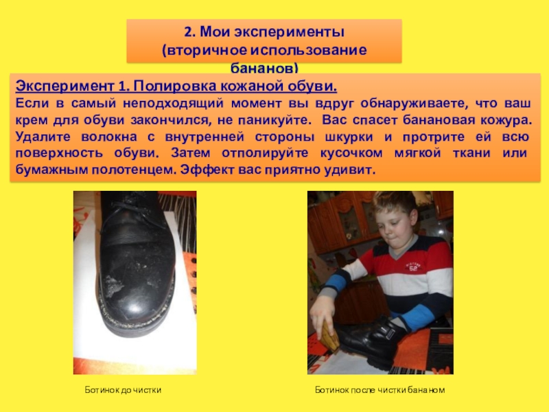 Ботинок после чистки бананом