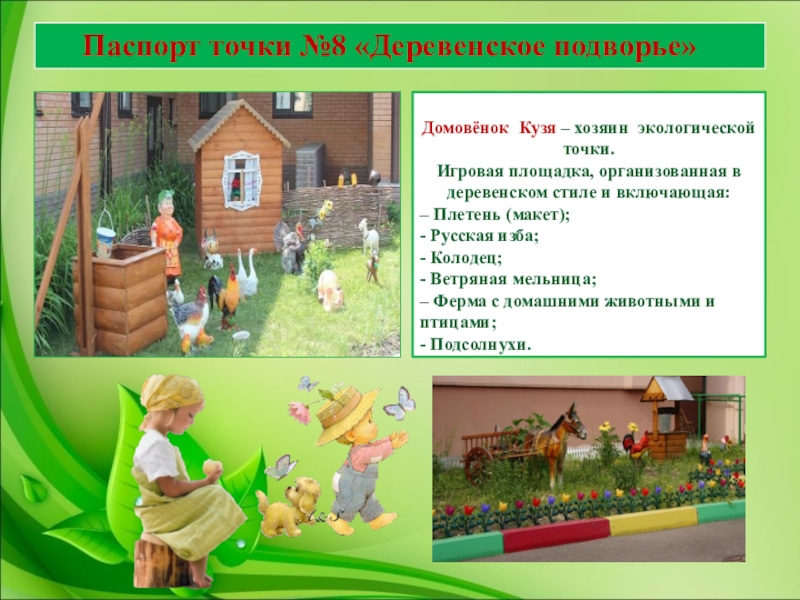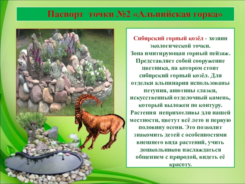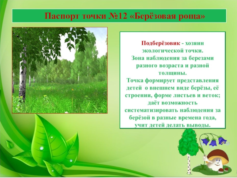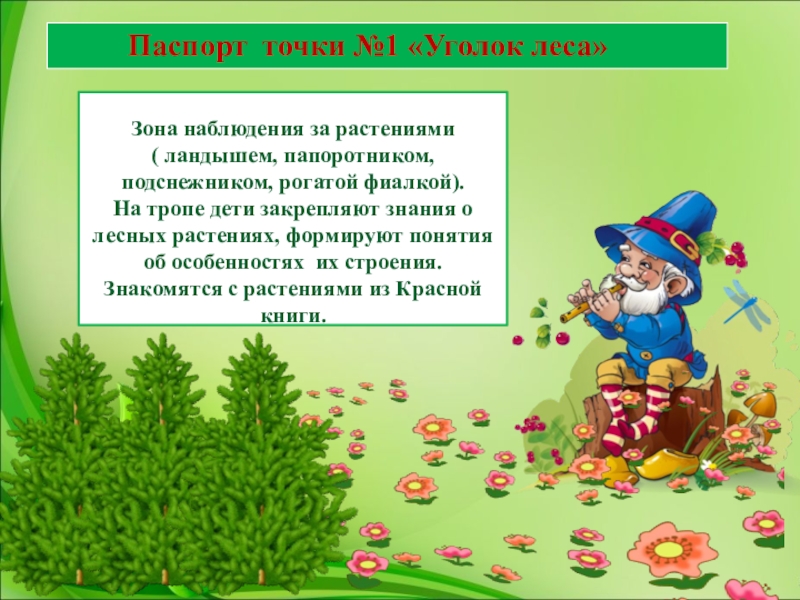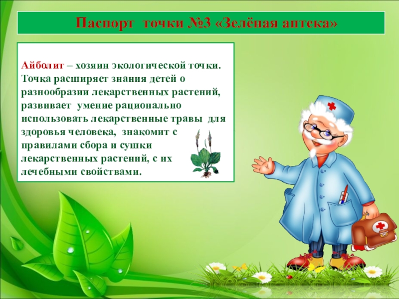 Точка расширяет знания детей о разнообразии лекарственных растений, развивает умение рационально использовать лекарственные травы для здоровья человека, знакомит с правилами сбора и сушки лекарственных растений, с их лечебными свойствами.