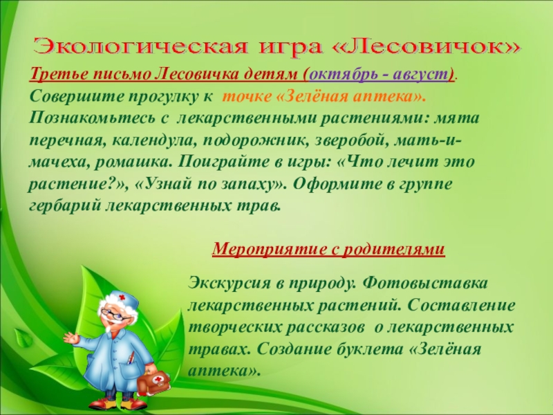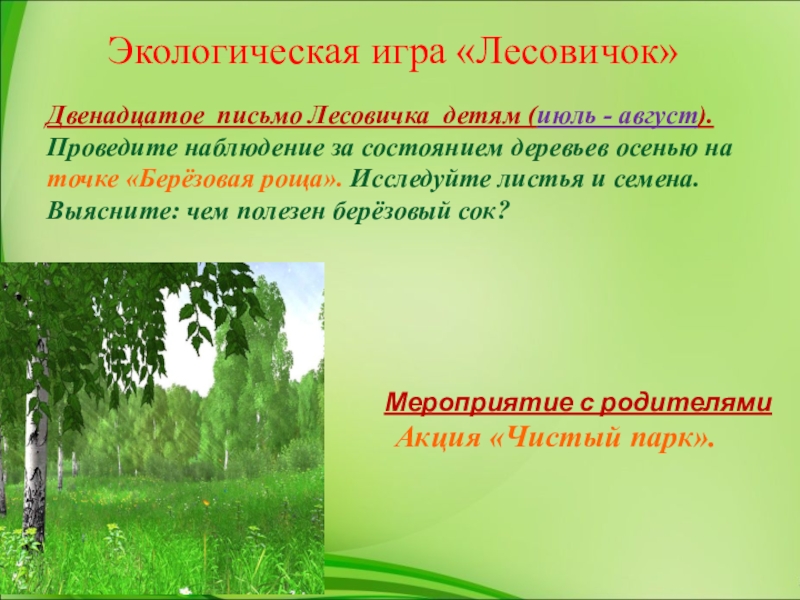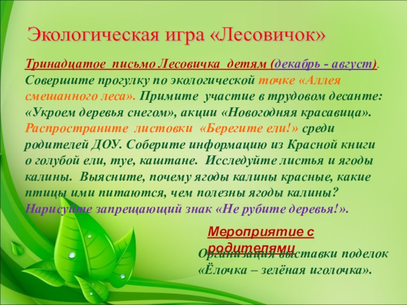 Четвёртое письмо Лесовичка детям (ноябрь - август).