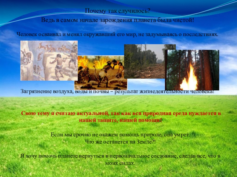 Загрязнение воздуха, воды и почвы – результат жизнедеятельности человека!