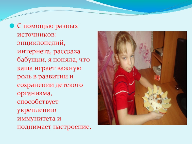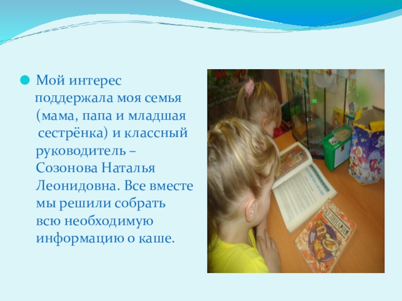 сестрёнка) и классный руководитель – Созонова Наталья Леонидовна. Все вместе мы решили собрать всю необходимую информацию о каше.