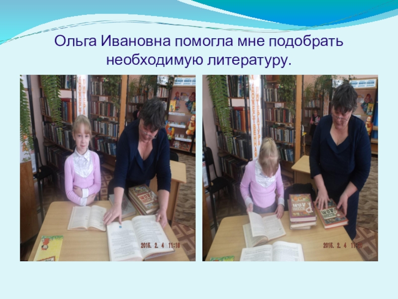 Слайд 3Ольга Ивановна помогла мне подобрать необходимую литературу.