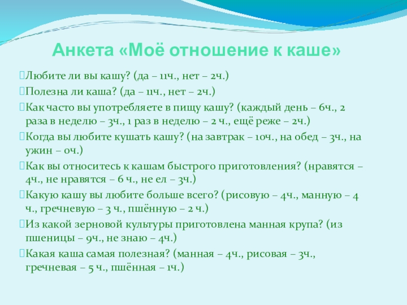 С классным руководителем мы подготовили анкету «Моё отношение к каше», на