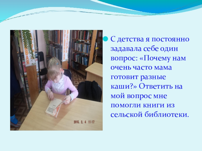 часто мама готовит разные каши?» Ответить на мой вопрос мне помогли книги из сельской библиотеки.