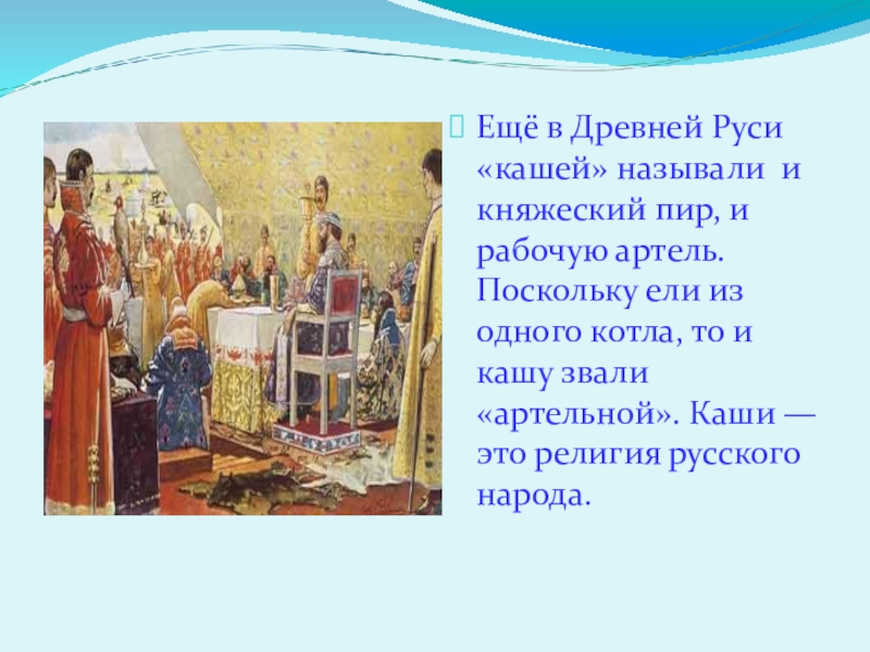 Ещё в Древней Руси «кашей» называли и княжеский пир, и рабочую
