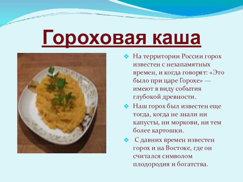 Наш горох был известен еще тогда, когда не знали ни капусты, ни моркови, ни тем более картошки.