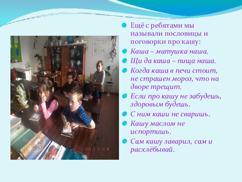Ещё с ребятами мы называли пословицы и поговорки про кашу: