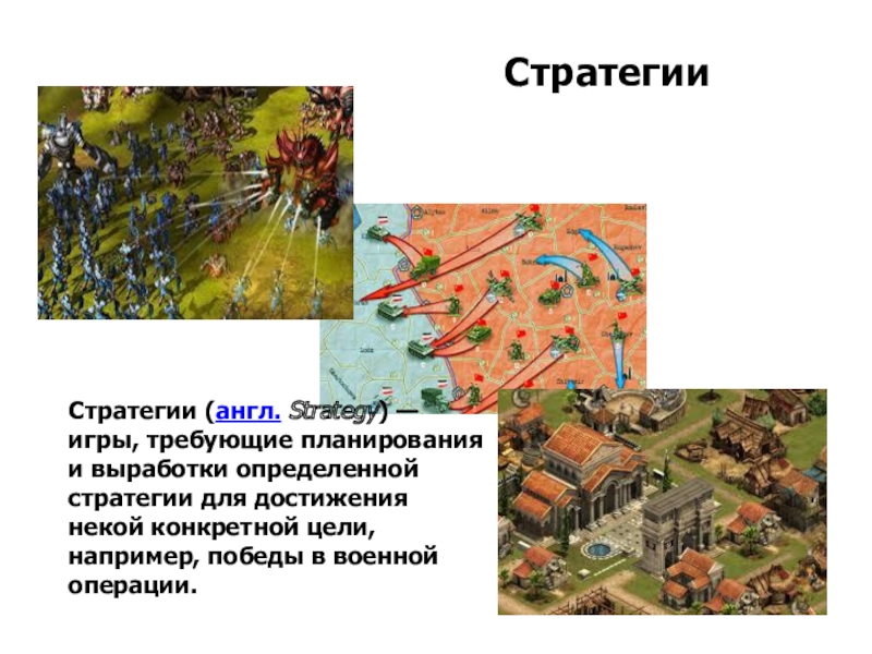 Стратегии (англ. Strategy) — игры, требующие планирования и выработки определенной стратегии для