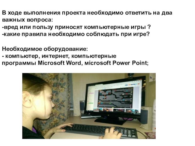 о влиянии компьютерных игр на детей; узнать существуют ли гигиенические требования, которые необходимо соблюдать детям.