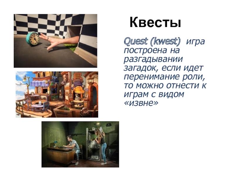 Quest (kwest) игра построена на разгадывании загадок, если идет перенимание роли,