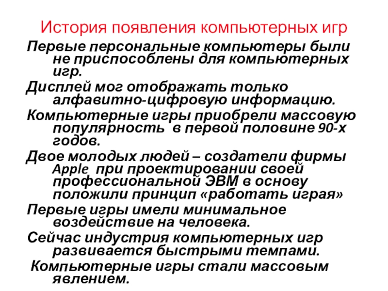 Компьютерные игры приобрели массовую популярность в первой половине 90-х годов.