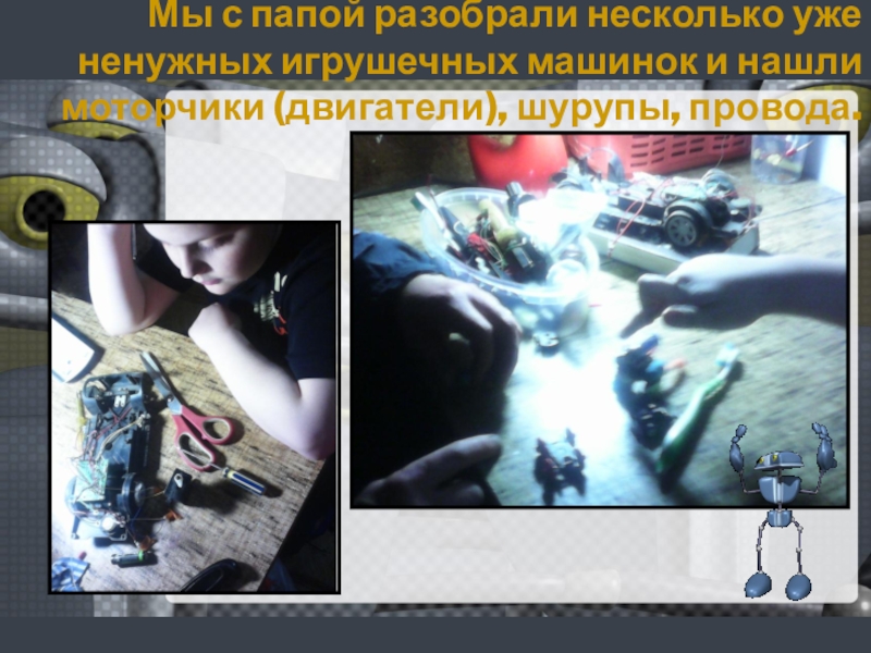 Мы с папой разобрали несколько уже ненужных игрушечных машинок и нашли